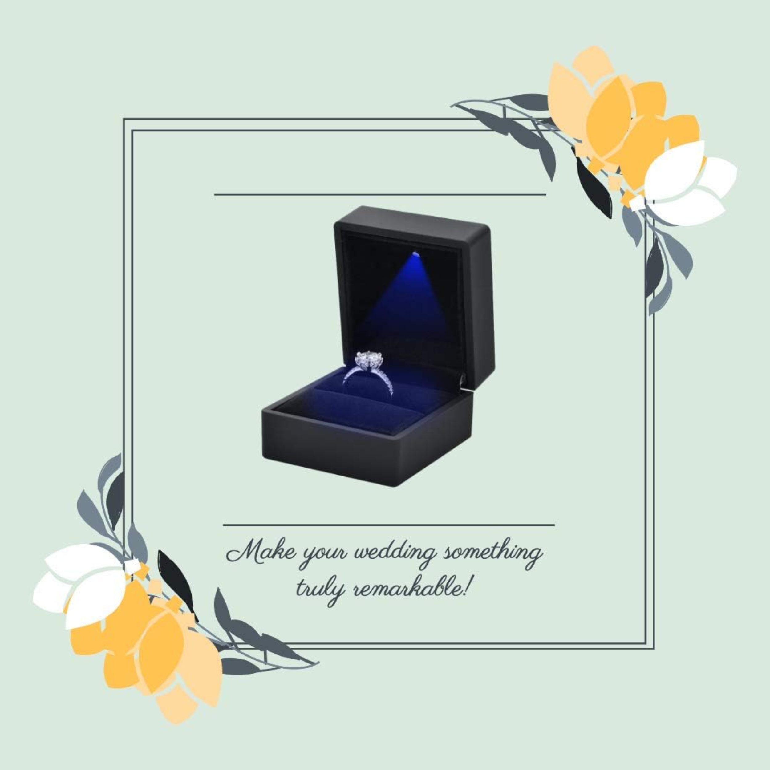 Ring box is the perfect addition for any special occasion like Anniversary, Wedding, Engagement, Valentine’s Day, Mother’s Day, Birthday. Ideal jewelry gift box for Wife, Girlfriend, Sister or Mom or any other special woman in your life. Small LED light inside the display box lights up automatically when opening the ring, earrings box and makes your jewelry sparkle. ✔ Battery INCLUDED. Luxury gift box is perfect addition for ring, earrings, pendant, brooch or pin.